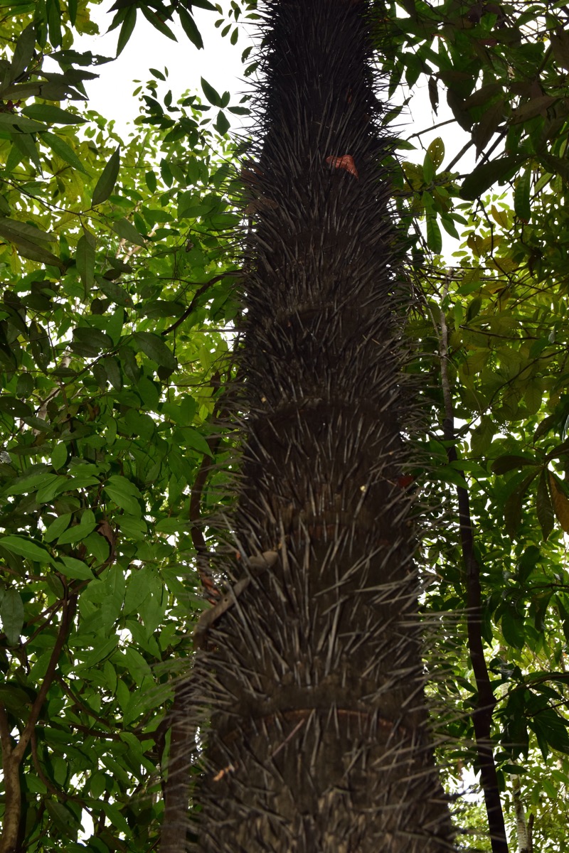Die Palme verhindert ganz wirksam das man an ihr hochklettert um ihr an die Nüsse zu gehen.